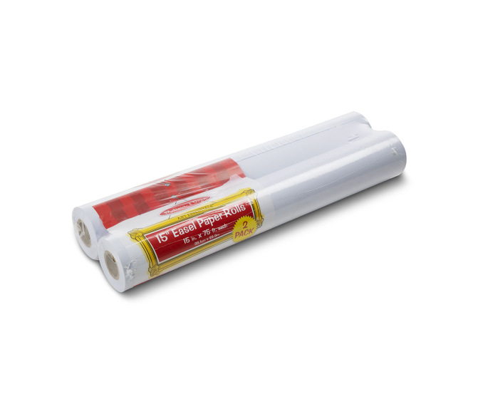 Two extra-long rolls of premium white bond paper, each 15" x 75', come in this extra-value refill set. Ideal as replacement rolls for standard-sized easels, this high-quality paper is also perfect for spreading out on the floor or table for your child's next masterpiece! Perfect for use with pencils, crayons, markers, chalk, poster paints or watercolors.
