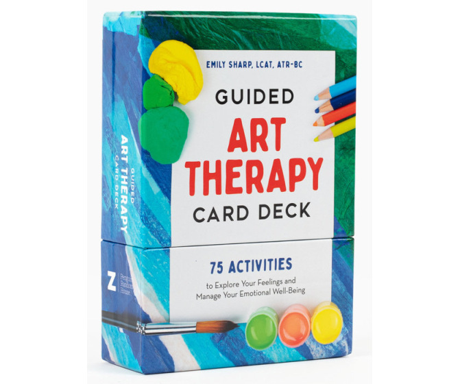 Guided Art Therapy Card Deck allows you to use art as therapy, focusing on the inherent healing power of art making to manage anxiety and stress, improve self-esteem, and deepen your relationships with others and your inner self. In this deck of 75 activities, you’ll explore a wide range of artistic mediums, including painting, drawing, writing, collage, photography and digital art, sculpture, and mixed media, with each activity designed to be created using limited supplies. While traditional art therapy requires sessions facilitated by a professional licensed therapist, these activities and reflection questions, developed by licensed art therapist Emily Sharp, LCAT, ATR-BC, allow you to have a healing experience with art on your own, at your own pace.