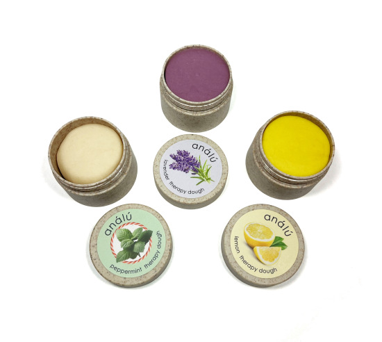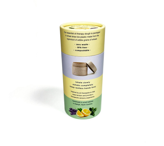 Canister contains three smaller sample-size jars of therapy dough: energizing lemon, calming lavender & invigorating peppermint. Made with plant based ingredients and pure essential oils.
