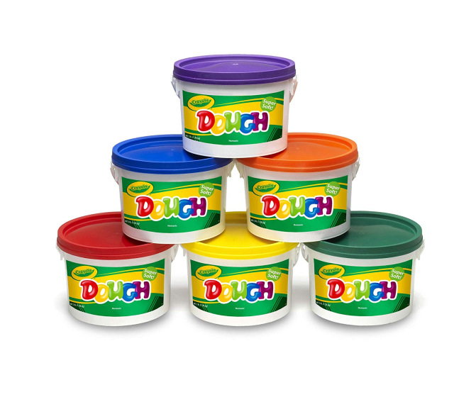 Crayola's famous nontoxic modeling dough. Comes as set of six popular colors: yellow, orange, red, purple, blue, and green. Large tubs ensure you'll have enough for any sized group.