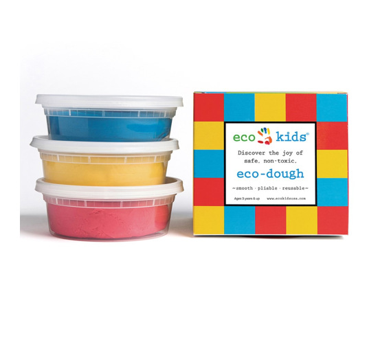 Eco-dough is hand made in small batches using natural, non-toxic ingredients. It provides hours of artistic exploration as well as engaging children with an opportunity to learn the basics of color theory by experimenting with mixing and blending the primary colors included in this assortment. Includes a total of 1.5 pounds of dough.