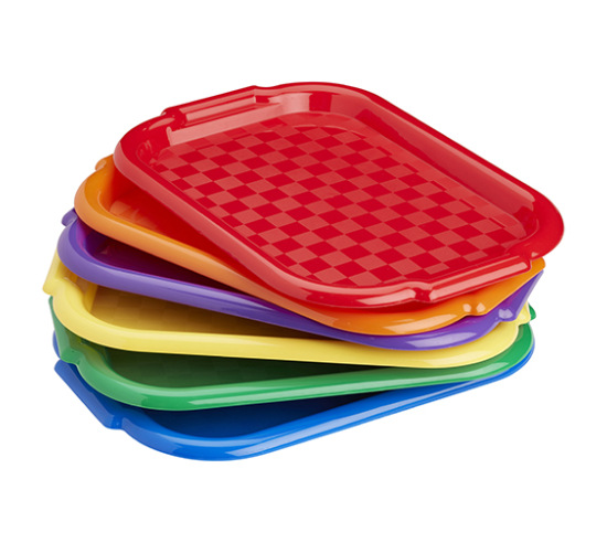 Stay organized and mess-free with this 6-pack of colorful plastic art trays. Ideal for holding paint, mixing colors and other artistic uses. A raised lip with rounded edges helps prevent the contents from spilling out while making them easy on little hands. When art time is over, simply rise with soap and water to prepare them for the creative activity. Trays nest neatly together for compact storage when not in use. Intended for use by ages 3+. Trays measure 10.4" x 15"