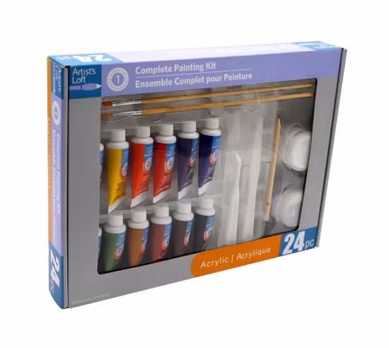 This complete 24 piece acrylic painting starter kit includes everything you need. From paint tubes and brushes to painting knives, palette and more. Includes fast drying water-based paints which are perfect for a wide range of painting techniques.