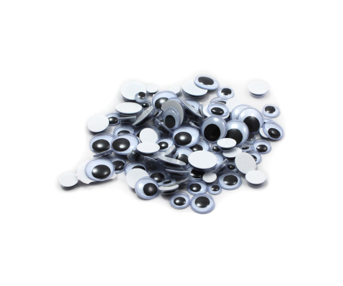 Pack of 100 wiggly eyes in assorted sizes. Great for all sorts of art therapy and craft projects. Features a peel and stick backing so you can spare the glue.