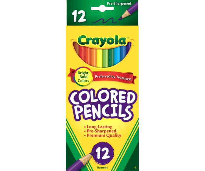 Twelve pre-sharpened colored pencils from Crayola. Bright colors for detailed work or drawing. Great for adult coloring books.