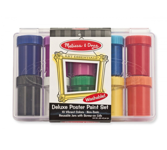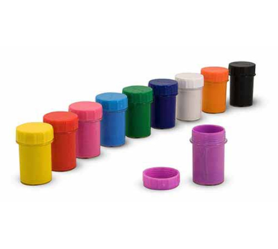 Premium quality, washable paints with screw-on lids in ten vibrant colors. Small jars measure .74 oz each