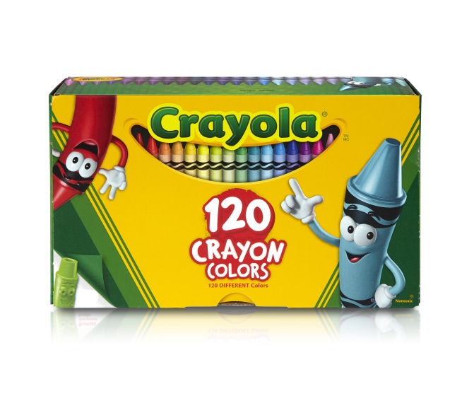 A box of a full 120 fantastic colors from Crayola. Rich vibrant colors for coloring and drawing. Box includes a built-in crayon sharpener.
