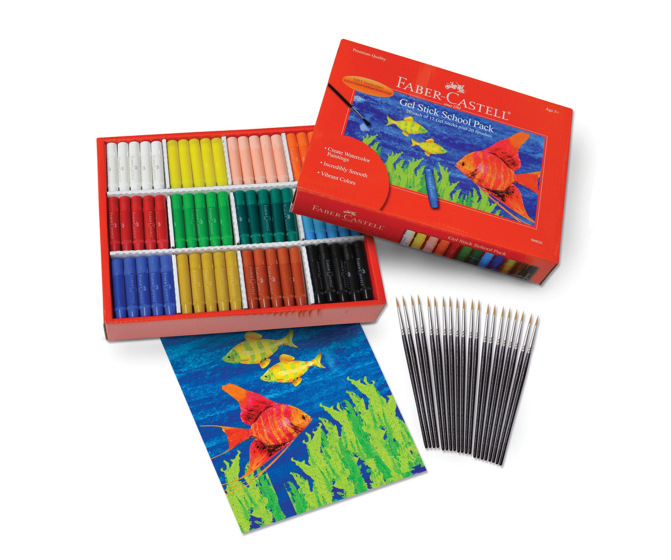 Gel Sticks slide on smoothly with rich, intense color. The pigments dissolve with water. Great on watercolor paper, canvas, paper mache and even wood!