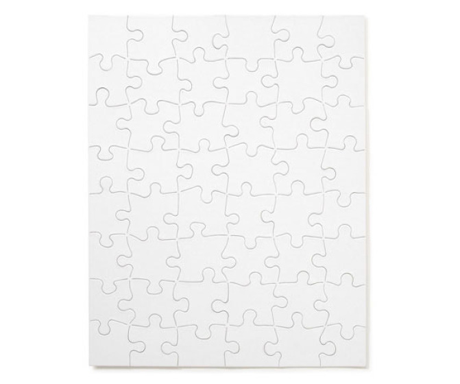 This puzzle is completely blank, offering endless possibilities. Make a unique creation using colored pencils, crayons, markers, stamps and more. Includes one 48 piece puzzle. Size 8.5" x 11"