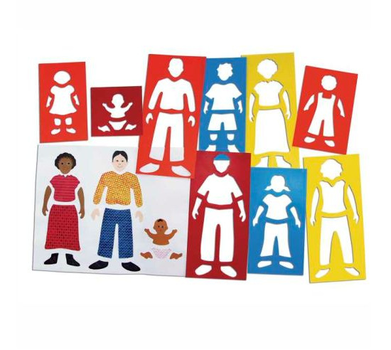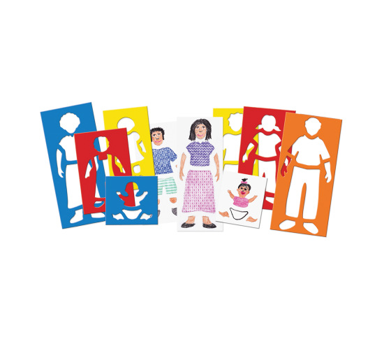 Compose a great family portrait with this family portrait stencil set. Includes nine different stencils plus four patterned rubbing plates for creating clothing patterns. Largest stencil is 10.5" x 4.75".