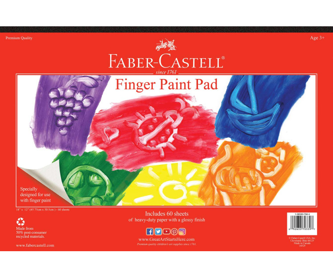 Large thick 18" x 12" sheets of paper for finger painting. Paper is thick enough to handle fingerpainting without bleed through and has a glossy finish making paint more comfortable to apply. 60 sheets per pad.
