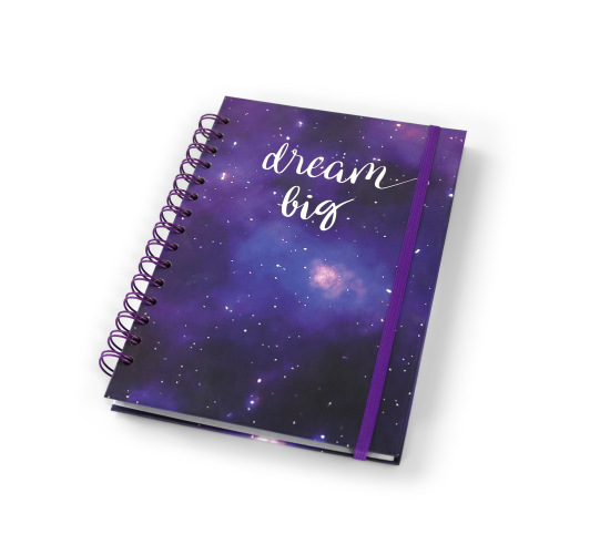 Write your dreams and wishes in this hardcover journal that states "Dream Big" on the cover. 100 lined sheets with an elastic ribbon as a page keeper. 6.5" x 9.75". The border of the paper matches the cover of the journal.