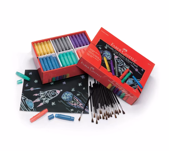 Metallic Gel Sticks have a creamy texture that glides onto paper, canvas and paper mache. Colors dissolve and blend with a wet brush for a metallic sheen. Try them on black paper or dark surfaces for a dazzling effect.