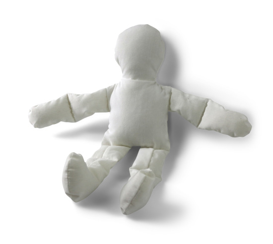 A soft-bodied blank doll. Doll can be painted and decorated with markers or paint. Approximately 11.5" tall head to toe.