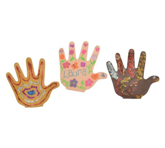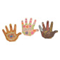 35 small multicultural handprints in a variety of skin tones. Work great as nametags, placeholders, or for numerous art and craft projects. Each handprint is 3.5" wide.