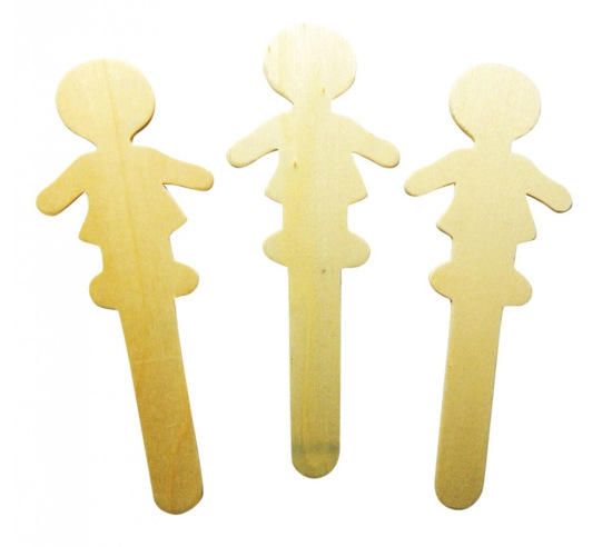 Eighteen craft sticks with boy and girl shapes on top. Decorate and use to talk about feelings, expression, empathy, or make puppet shows. Create awareness of self and body language.