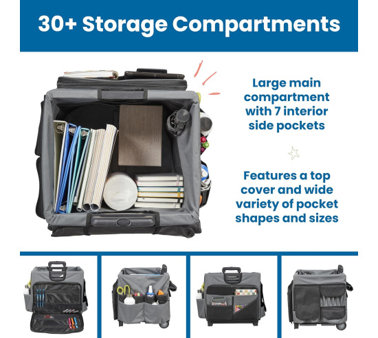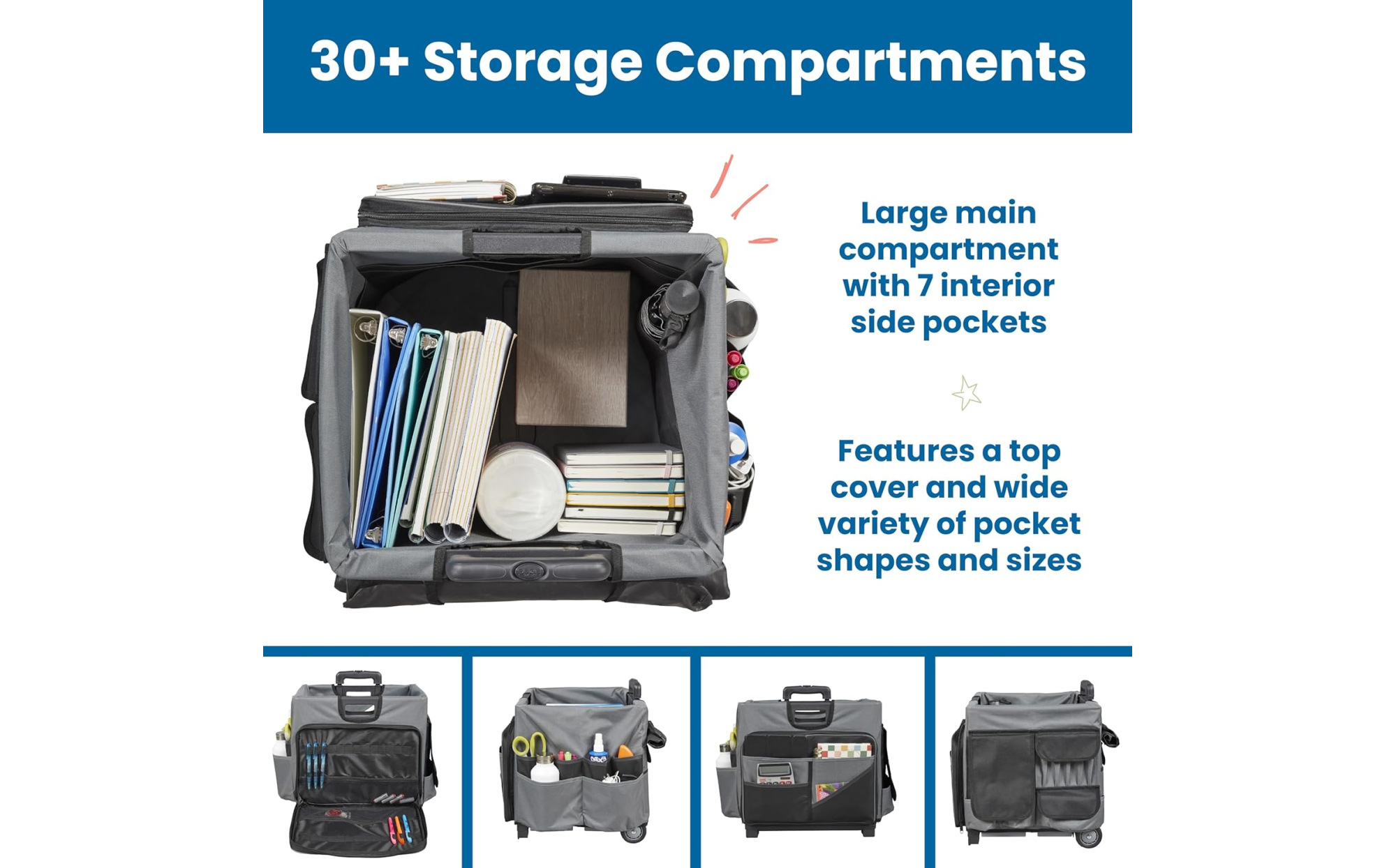 Stay organized wherever you go with this multipurpose rolling organizer. Designed for easy transport, it features four heavy-duty wheels that glide smoothly, making it perfect for moving books, teaching supplies, art materials, or personal items.