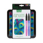 With 9 Pearlescent Permanent Markers and 1 Iridescent Marker, this Signature Paint Marker Set brings a satin finish to a variety of surfaces. Teens and adults can use these quick drying Pearlescent Markers on glass, plastic, wood, terra cotta, canvas, and metal, then overlap the Iridescent Color Changer for added dimension and special effects.