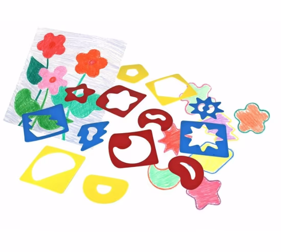 27 stencils and 27 templates Use these multi-purpose stencils for a wide range of art and craft projects. Start by popping out the interior shapes. Use these shapes as templates. There are three different challenge levels. The square stencils are the easiest to trace and represent basic shapes. The rounded stencils progress to slightly more complicated shapes. The slanted stencils are the most challenging and fun to use in art projects. Let children work at the appropriate level for their developmental needs.
