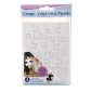 Set of four blank puzzles with endless possibilities. Make a unique creation using colored pencils, crayons, markers, stamps and more. Each puzzle is 16 pieces. Size 4" x 5.5"