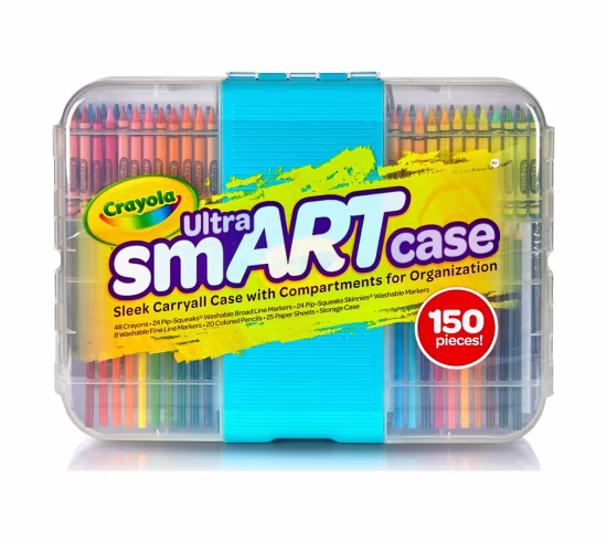 The Crayola Ultra smART Case is an amazing collection of art products in a ultra-cool case! Includes a variety of Crayola favorites in a sleek, contemporary case with compartments that slide out and fold in. It’s the fun way to store and transport creative play!