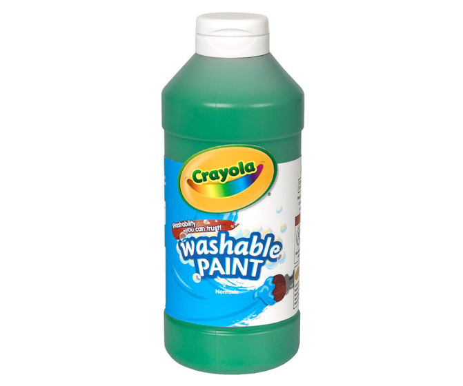 A large bottle of rich green washable paint in a 16 ounce translucent, plastic squeeze bottle with air-tight flip-top lid! Washable paint does not drip easily from brush, does not separate - is freeze-thaw stable, assures consistent performance and features an easy-clean dispensing.