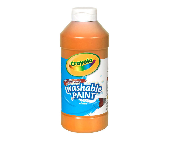 A large bottle of rich orange washable paint in a 16 ounce translucent, plastic squeeze bottle with air-tight flip-top lid! Washable paint does not drip easily from brush, does not separate - is freeze-thaw stable, assures consistent performance and features an easy-clean dispensing.