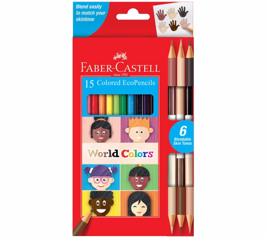Celebrate every skin tone and mix to match your own with these unique set of high quality colored pencils from Faber Castell®. Set features 12 colored pencils and 3 exclusive, double-ended pencils that are super blendable for creating any skin tone.