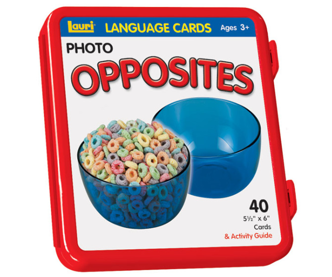 This set includes forty picture cards with twenty opposites such as full and empty in a hinged storage case. Bright big pictures are useful for speech delay and children with autism.