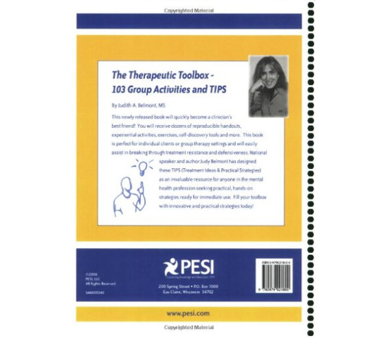 Judith Belmont, M.S., has gathered this collection of 103 Group Activities and T.I.P.S. (Treatment Ideas and Practical Strategies) from more than 30 years of clinical experience coupled with her passion for "hands-on" mental wellness education.