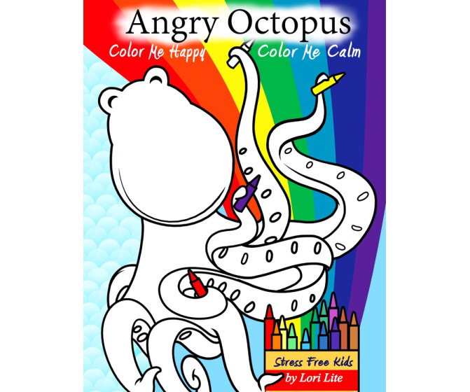 Angry Octopus Color Me Happy, Color Me Calm is a light-hearted, self-help coloring book designed to guide 4-11 year olds and their parents, teachers, or counselors through simple everyday techniques that can be used to control anger, reduce stress, and increase happiness. This interactive coloring book is filled with simple strategies to self-soothe, manage anger, and improve emotional intelligence. Children are empowered to manage their BIG feelings while coloring 38 illustrations. Each mindful page motivates children to express themselves peacefully without having a tantrum, meltdown, or outburst. Dozens of coloring pages designed for children.