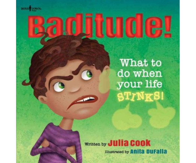 Luckily, Noodle's mom and teacher are there to help him understand how his bad attitude or "baditude" is affecting his mood and those around him. Even his friends are starting to avoid him. If only he can stop looking at everything so negatively, more positive results will follow.
