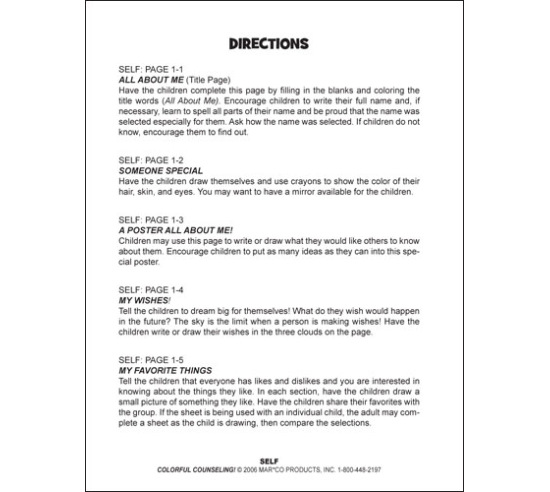 Colorful Counseling brings you 10 ready-to-reproduce lifeskill units that will enable children to communicate their thoughts and emotions through drawings which can later be used as springboards for discussion.