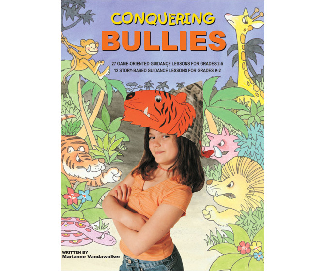 Grades K-5. This collection of innovative bully-conquering lessons features 12 jungle animals in a selection of story-based lessons for grades K-2 and in a selection of games for grades 2-5. The 12 animals are identified with bullying behaviors that children face in their everyday lives and for which they need coping strategies. You will find a game lesson and a story lesson for: gossiping, excluding from a group, threatening, bossing, denying doing the wrong thing, putting others down, being snooty, ganging up on someone, name-calling, denying or lying about actions, whining and complaining, and yelling. The program includes: