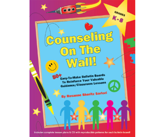 Bulletin Boards! Whether you enjoy doing them or you don’t, Counseling On The Wall is for you. With thirteen topics to choose from, almost all visuals ready-to-print in color, a variety of borders at your fingertips, and a lesson guide for using the completed board in classrooms or small groups, you will no longer spend hours gathering materials and thinking of appropriate topics.