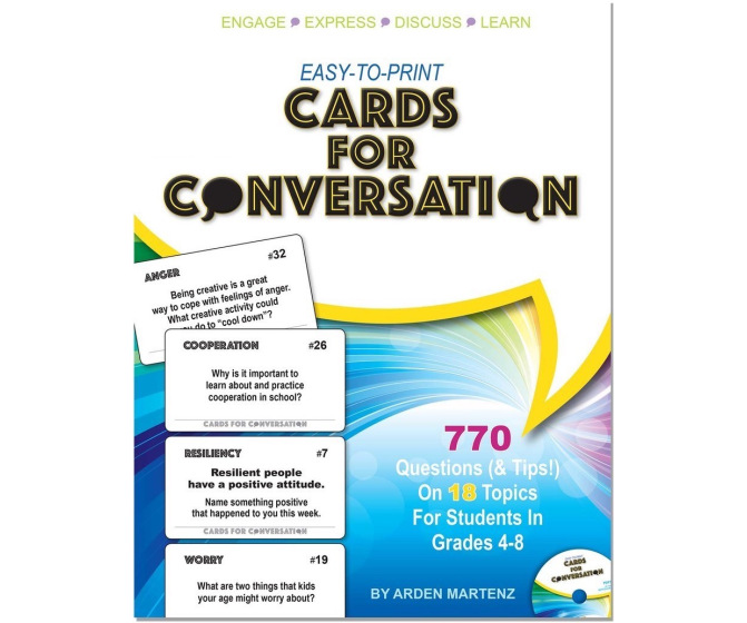 Easy-to-Print Cards for Conversation includes 18 topics for students in Grades 4-8. Each topic has at least 30 questions provided in a printable card format.