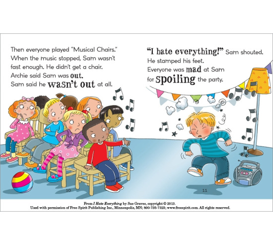 It’s hard for children to accept not getting their way. Sam hates when his brother cries or his dad is too busy to play. When he loses his place in “Musical Chairs,” Sam cries, “I hate everything!” Sam learns new ways to deal with his anger and feel better. Part of the Our Emotions and Behavior series, I Hate Everything! uses simple, easy-to-read text to introduce concepts of anger management for children. The book also includes a two-page series of pictures that invites kids to tell a story in their own words. A special section for adults suggests discussion questions and ideas for guiding children to talk about their feelings.