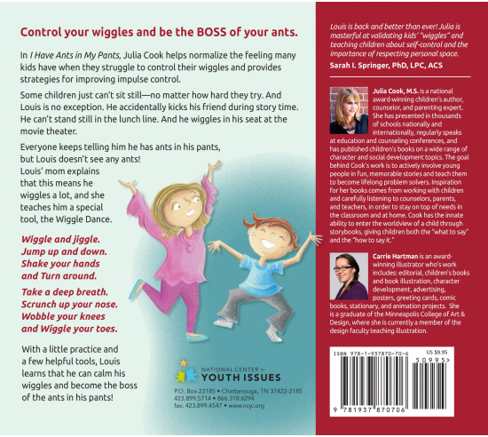 In I Have Ants in My Pants, Julia Cook helps normalize the feeling many kids have when they struggle to control their wiggles and provides strategies for improving impulse control.