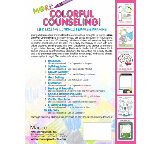 Young children often find it difficult to express their thoughts in words. More Colorful Counseling! is a ready-to-use, art-based resource for counselors. It provides more than 100 drawing activities children will enjoy as they learn important social skills and life skills.