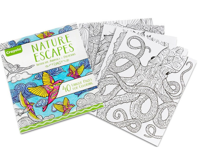 Crayola Nature Escapes offers soothing scenes to color for adults and kids alike. Lose yourself in a complex-but-relaxing coloring art celebrating the natural beauty all around us. Includes 40 detailed designs on high-quality paper. Perforated for easy tear out.