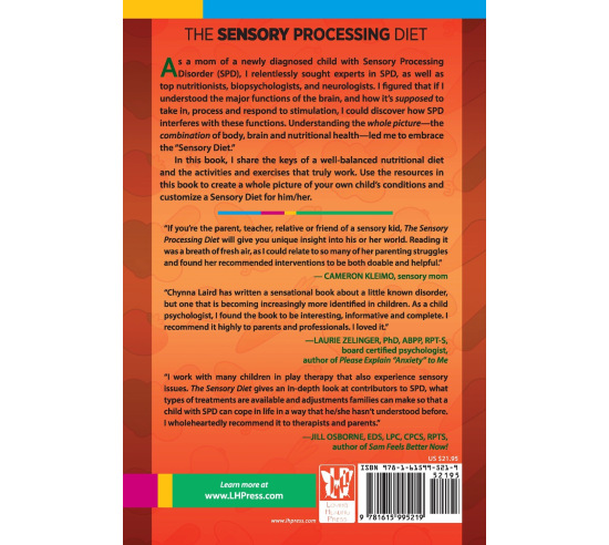 As a mom of a newly diagnosed child with Sensory Processing Disorder (SPD), I relentlessly sought experts in SPD, as well as top nutritionists, biopsychologists, and neurologists. I figured that if I understood the major functions of the brain, and how it's supposed to take in, process and respond to stimulation, I could discover how SPD interferes with these functions. Understanding the whole picture - the combination of body, brain and nutritional health - led me to embrace the "Sensory Diet." In this book, I share the keys of a well-balanced nutritional diet and the activities and exercises that truly work. Use the resources in this book to create a whole picture of your own child's conditions and customize a Sensory Diet for him/her.