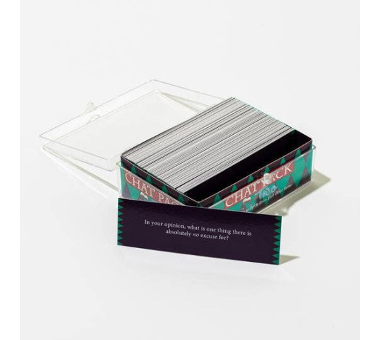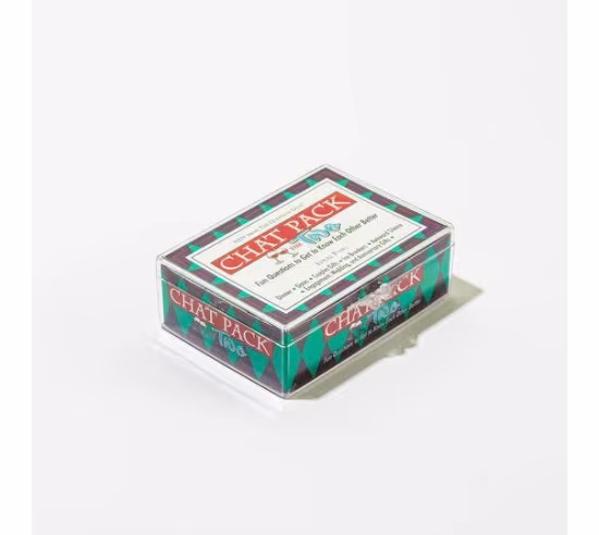 How well do you really know each other? Chat pack for two contains 156 cards, each one featuring a thought provoking question guaranteed to help couples of all ages get to know each other better. Whether you've known each other for only a few days or for an entire lifetime, this little box of questions will help you share your thoughts, hopes, and dreams on a wide range of fun and fascinating topics.