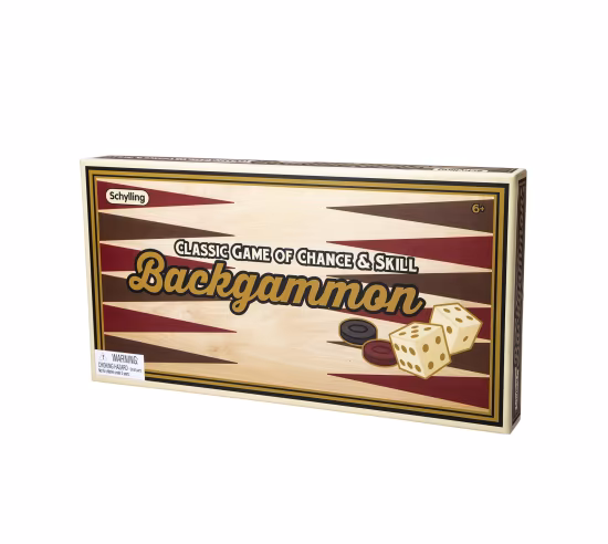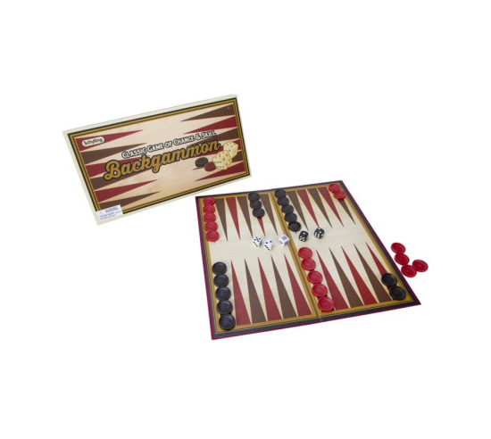 In this classic game, the retro-inspired game board has been crafted with a vintage feel. Includes 15 red movers, 15 black movers, 2 standard dice, and 1 doubling die. Game instructions are printed on the lid of the box.