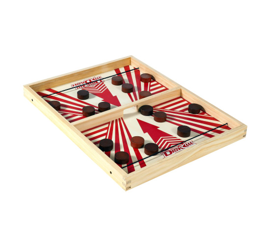 The classic fast paced game of strategy and skill. Players use the band to propel discs into each other. Solid wood contruction.