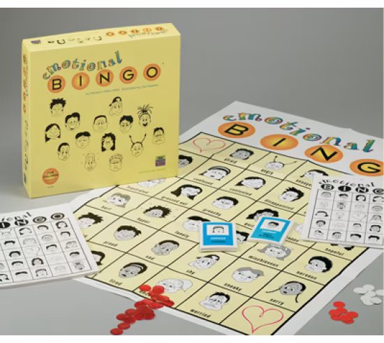Features feelings that are common in adolescence. Emotional Bingo offers a new, yet familiar, approach to feelings that appeals to teens of all ages. The game includes 32 Emotional Bingo Cards (English on one side; Spanish on the other), Tokens, Call-Out Cards, and a helpful Leader's Guide, with discussion guidelines and counseling suggestions. Also available in a children's version.