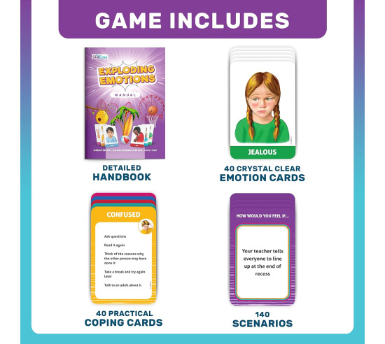 Not just an educational tool, this set turns learning into play! Included are 140 engaging scenarios for a family-friendly game that's not only hilarious but also enriching. This social-emotional game is an excellent way to explore and understand emotions in a relaxed and enjoyable setting, perfect for children and adults alike.