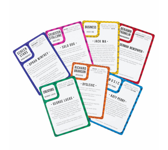 This fun card game (think "Go Fish" on steroids) that teaches lessons of overcoming failure, and the value of persistence in success. While playing a fun card game, you will learn little known facts about many of the most successful heroes from current times and history. The lesson in this game is that there is no shortcut to achieving your dreams & goals. Even the most famous and successful people you can think of have endured many failures and setbacks throughout their life.