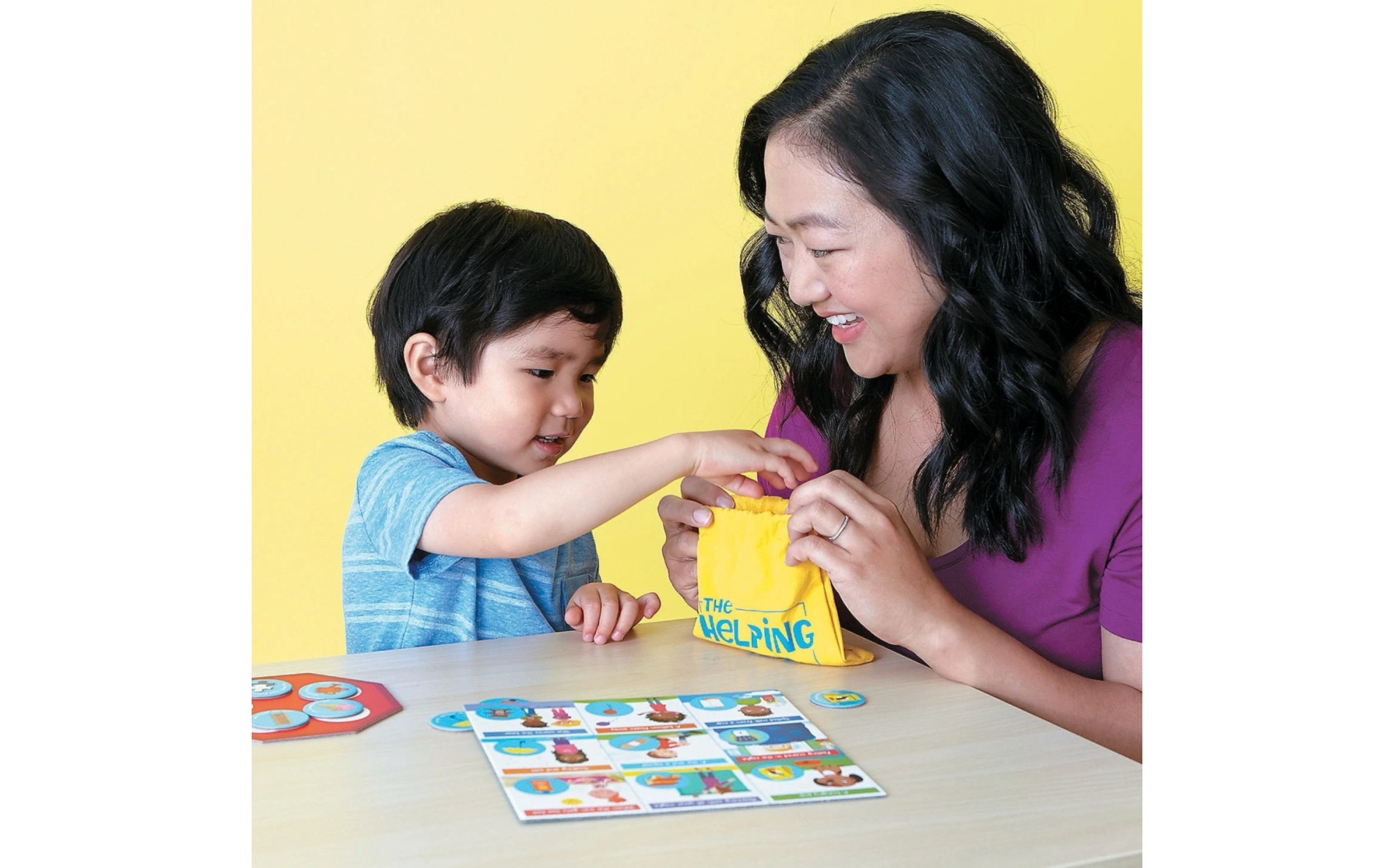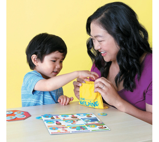 Players take turns drawing tokens from the Helping Bag. Each token shows an item that can assist someone on the game board. If a token matches a character’s need, kids get to help solve the problem. Whether it is offering an umbrella to a girl caught in the rain or finding a favorite toy to soothe a sad child, each match encourages emotional awareness and thoughtful choices.
