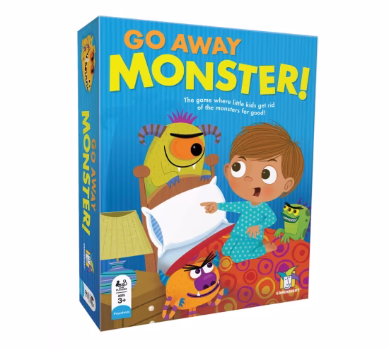 For 1-4 players, ages 3+, Go Away Monster can be played in 15 minutes.