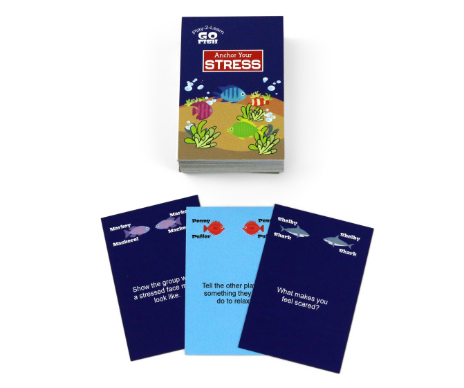 Here’s a therapeutic twist on the classic Go Fish card game. Anchor Your Stress teaches players about stress and anxiety, while helping them deal with anxiety-provoking situations. It also provides practical thinking skills that include self-talk, coping mechanisms, and relaxation techniques. Includes two decks of 50 cards (one deck for grades K–2, the other for grades 3–5). Each card poses an open-ended question that the player must answer before he or she can request Henry Herring, Markey Mackerel, or any other fish needed for a match. Familiar and fun, Go Fish is an easy, affordable way for children to improve their social and emotional skills.